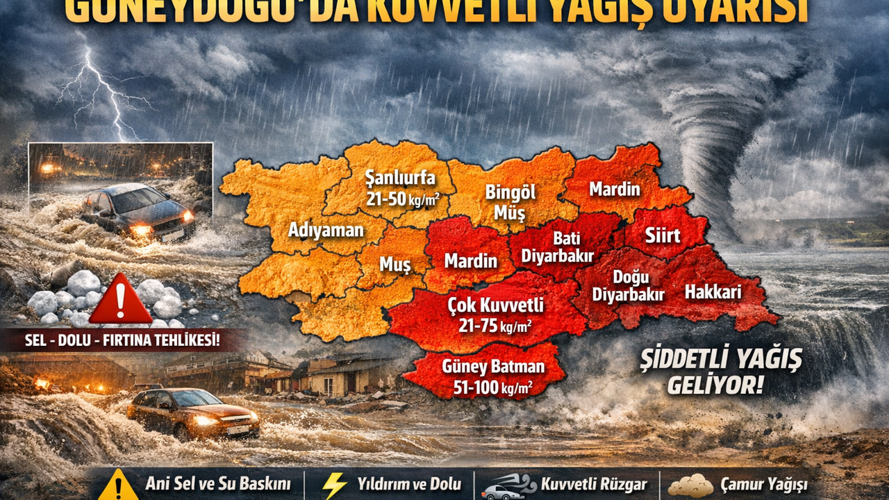 Yağışların özellikle Şanlıurfa, Adıyaman, Bingöl, Muş, Bitlis ve Hakkari çevrelerinde kuvvetli seviyede (21-50 kg/m²) olacağı tahmin edilirken, Malatya ve Elazığ’ın güney kesimleri de bu sistemden ciddi şekilde etkilenecek. Mardin genelinde ve Diyarbakır’ın batı bölgeleri ile Batman’ın güney kesimlerinde ise yağışların zaman zaman çok kuvvetli seviyeye (21-75 kg/m²) ulaşabileceği öngörülüyor.